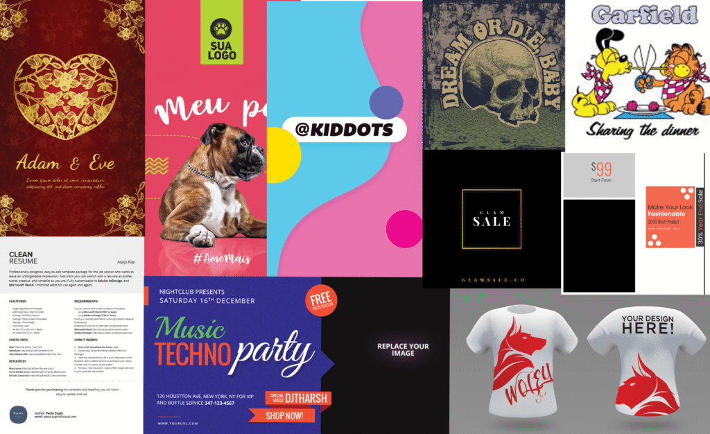 You’ll find templates for social media posts, YouTube thumbnails, business cards, banners, posters, resumes, 3D mockups, T-shirt designs, and much more — all categorized.